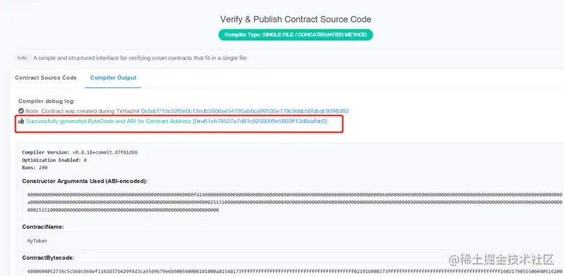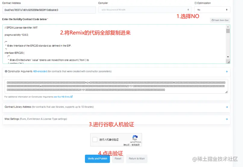 在浏览器里搜索合约代码,找到 contact,点击验证与发布
