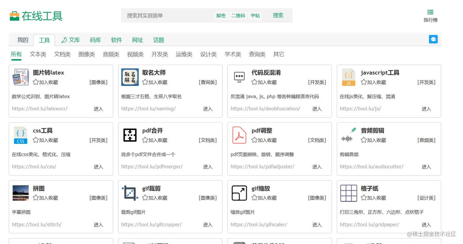 无论是JavaScript工具、GIF裁剪、http状态码,甚至今天吃什么,都可以在这里一站式解决! 如果你有什么解决不了的问题或是在工作中陷入了瓶颈,不如来这个网站看看,说不定会给你意料之外的惊喜~