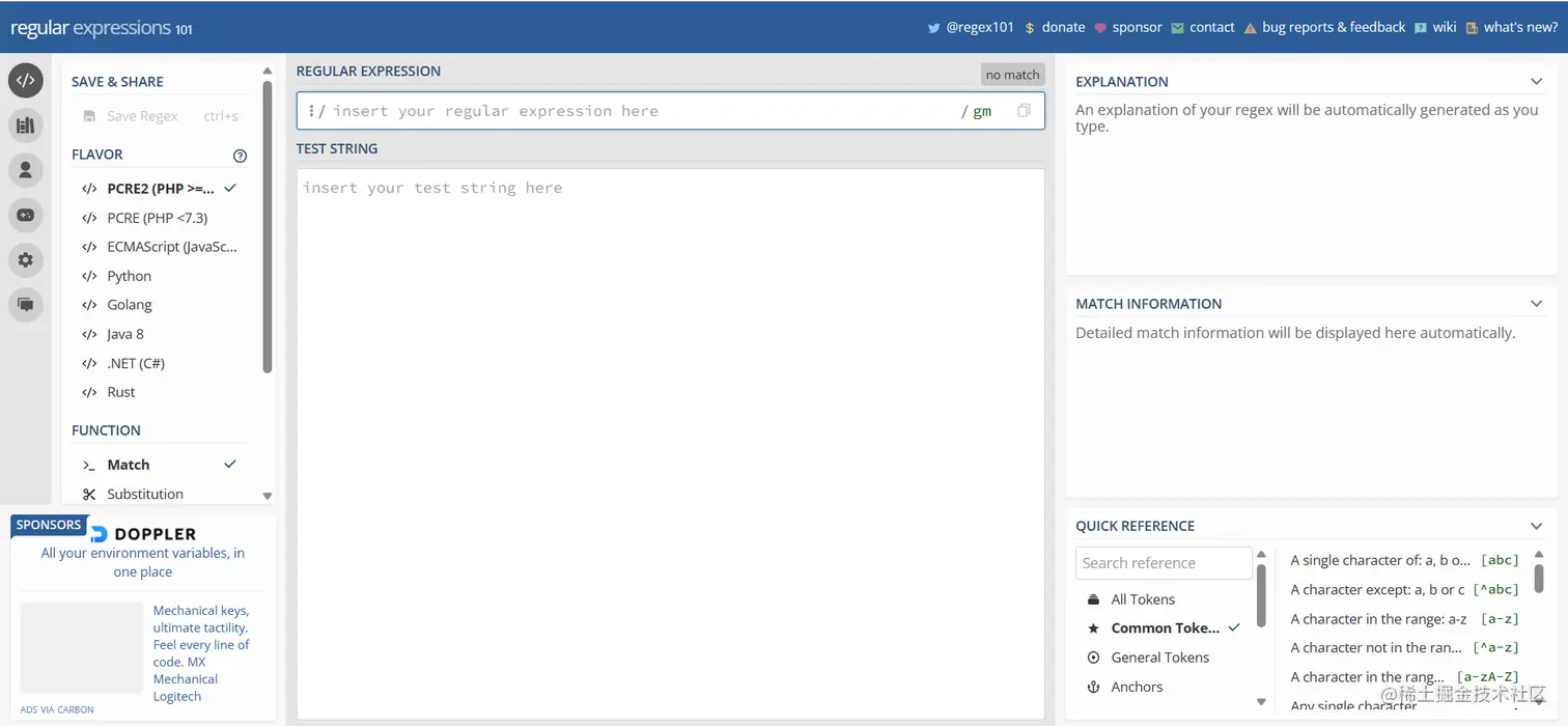 接下来介绍一些实用的工具软件:正则表达式测试和学习工具,它可以帮助你以低成本高效测试正则表达式的正确性,并且可以直接帮助你输出对应的 Python 代码。
