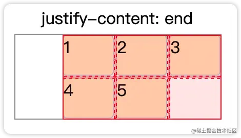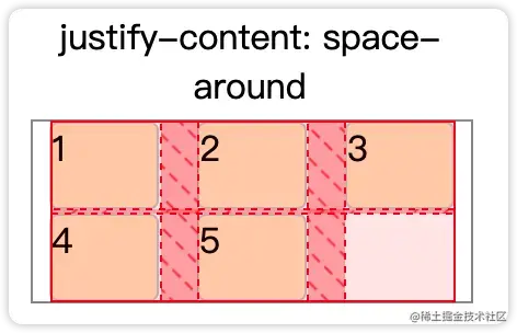 justify-content | 垂直方向上,子元素在容器空间中的对齐 | start:对齐到最开始位置。 center:居中对齐 end:对齐到最末尾。 space-between:多余空间平均分布在子元素中间。 space-around:多余空间平均环绕在子元素中间 space-evenly:多余空间平均分布子元素和容器边框之间。 stretch:拉伸子元素到撑满整个容器 |
