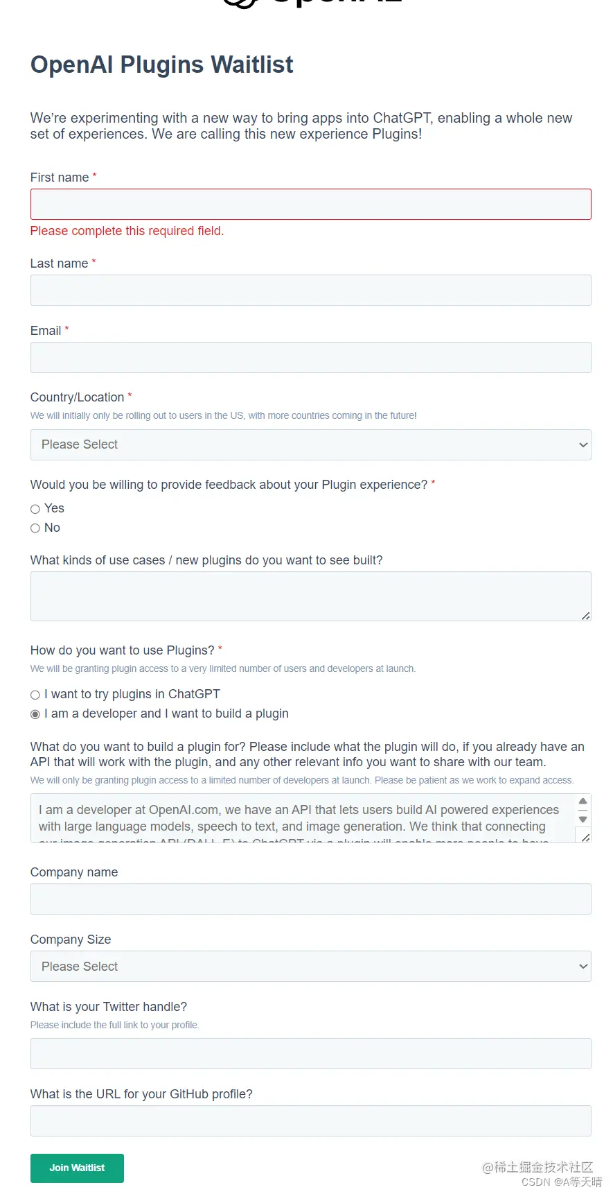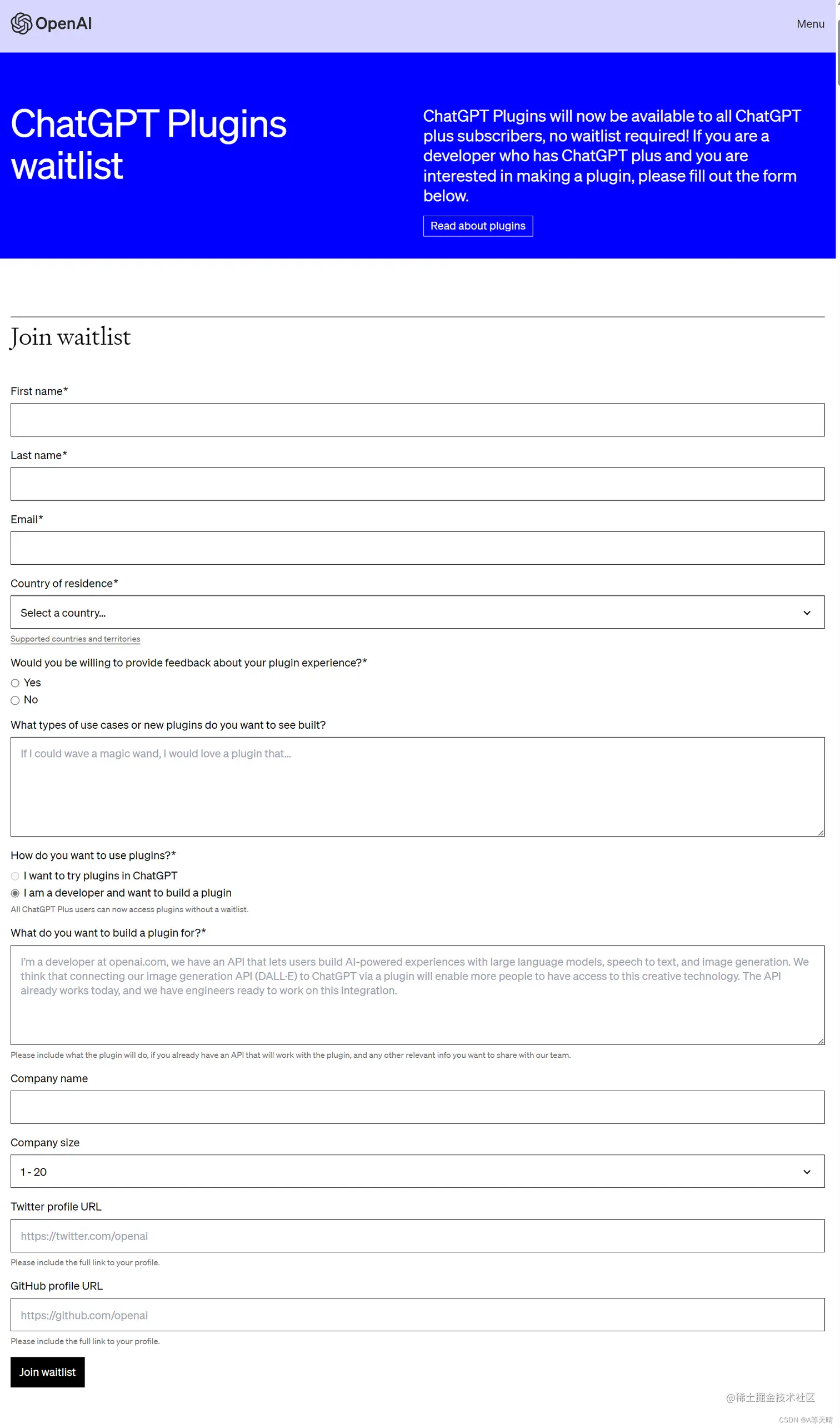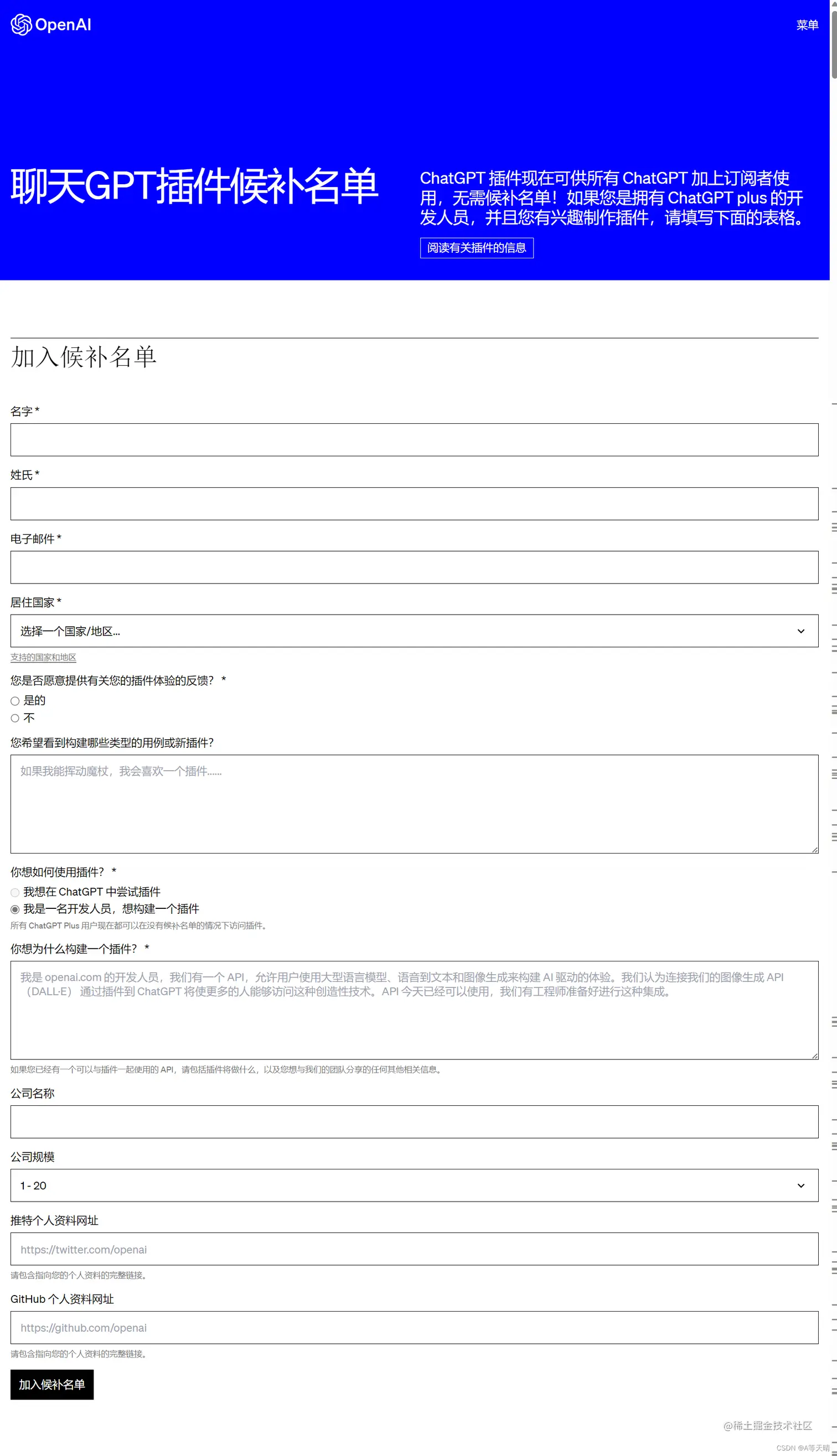 官方GPT插件申请入口地址:openai.com/blog/chatgp…