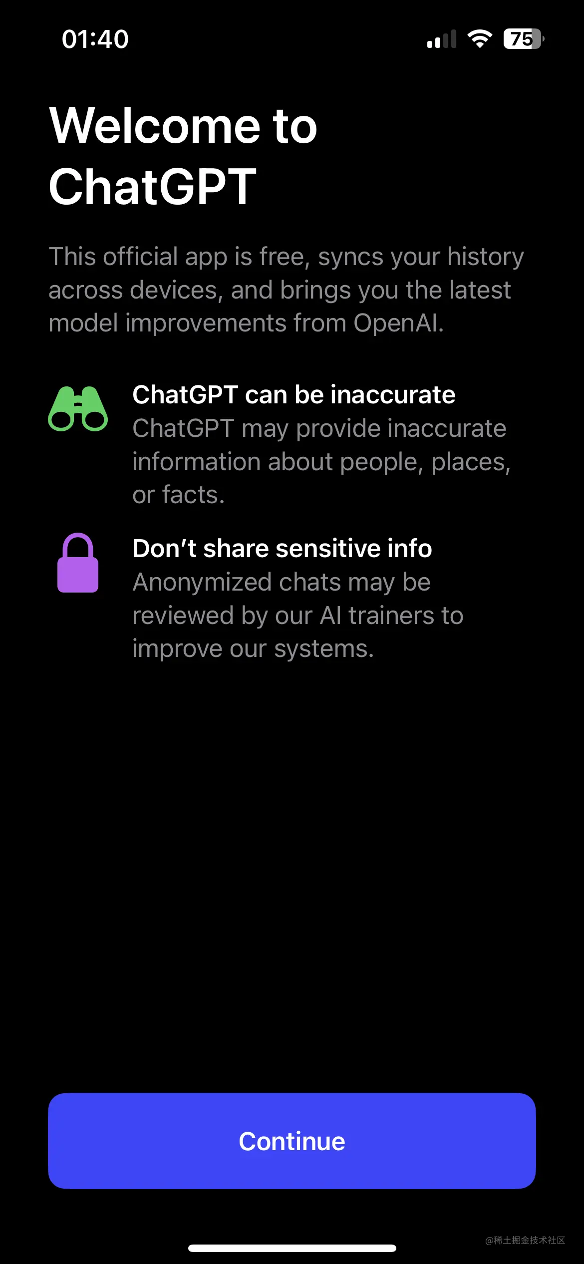 值得关注的是,目前只有iOS用户(美区)可以使用iOS版ChatGPT,安卓用户还要等一等。而且,iOS版ChatGPT依然会生成存在事实性错误的内容。官方提醒,用户最好不要在app内分享任何敏感数据。