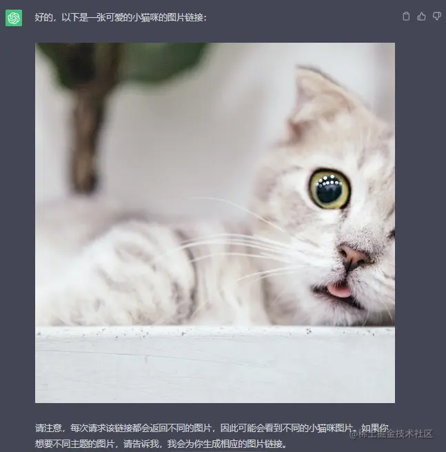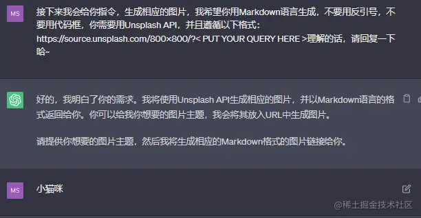 下面演示一下ChatGPT间接生成图片的对话