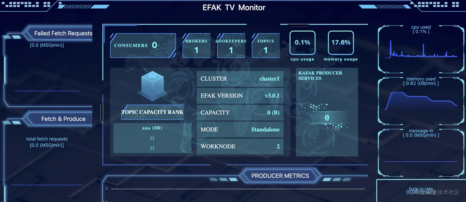 kafka 自身并没有继承监控管理系统,因此对 kafka 的监控管理比较不便,好在有大量的第三方监控管理系统来使用,这里介绍一款优秀的监控工具Kafka Eagle,可以用监控 Kafka 集群的整体运行情况。
