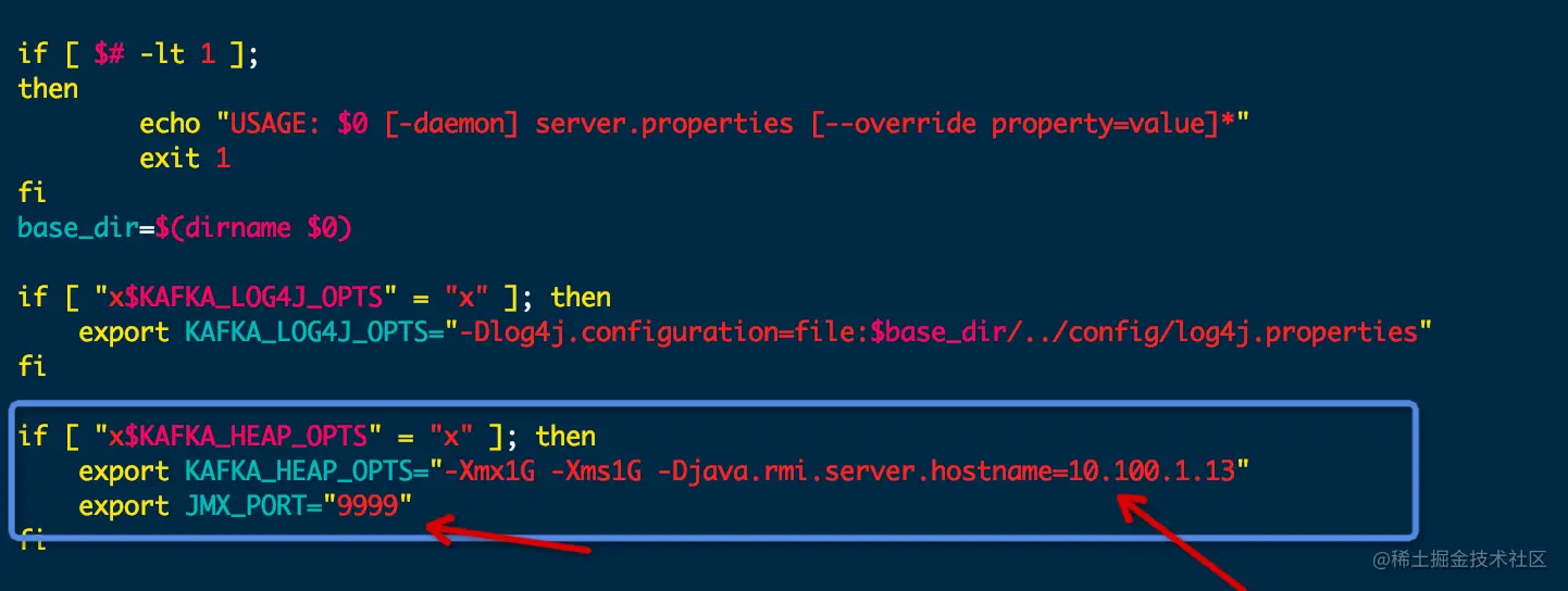 注意,kafka需要开启JMX端口,即修改kafka的启动命令文件kafka-server-start.sh,如下图: