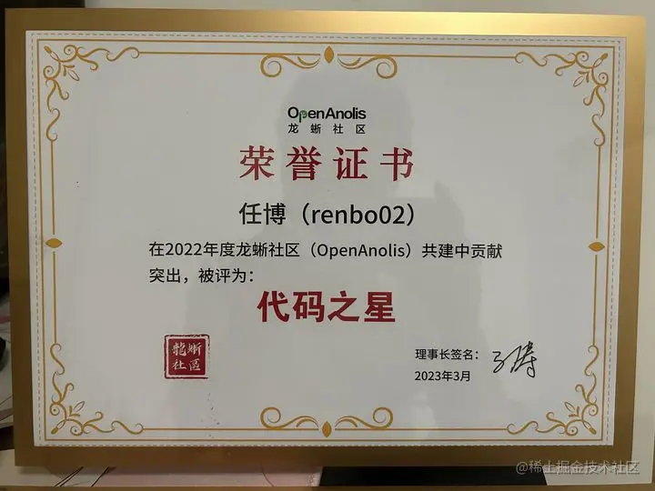 在参与软件包构建工作中,我遇到了各种大大小小的问题,好奇心驱使着我去思考和解决问题,当然傻瓜式不放弃地去追究一个问题也不好。社区中也有很多令人崇拜的“大神”,遇到自己解决不了的问题或者不懂的地方,也可以向他们请教。在参与社区工作这个过程中,我遇到了很多未曾接触的技术栈和知识,同时自己也获得了成长和乐趣,这段经历对我来说也意义深刻。过去的一年中,我也获得了 “ 2022 龙蜥社区年度优秀贡献奖-代码之星”奖项。热爱可抵岁月漫长!这份荣誉对我来说只是起点,而我将继续带着这份热爱,投身到开源的每个角落。