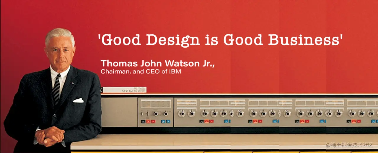 “好设计就是好生意”(Good design is good business) ----IBM创始人Thomas J. Watson早在20世纪50年代,IBM就开始关注好设计。IBM创始人Thomas J. Watson认为好的设计能很大程度提高产品的质量、功能和美观度,吸引更多的消费者和客户,增加销售额和利润等,从而直接影响到商业运营的成功。也正是对于设计如此高的重视程度造就了IBM的辉煌成就。