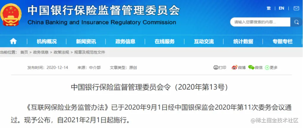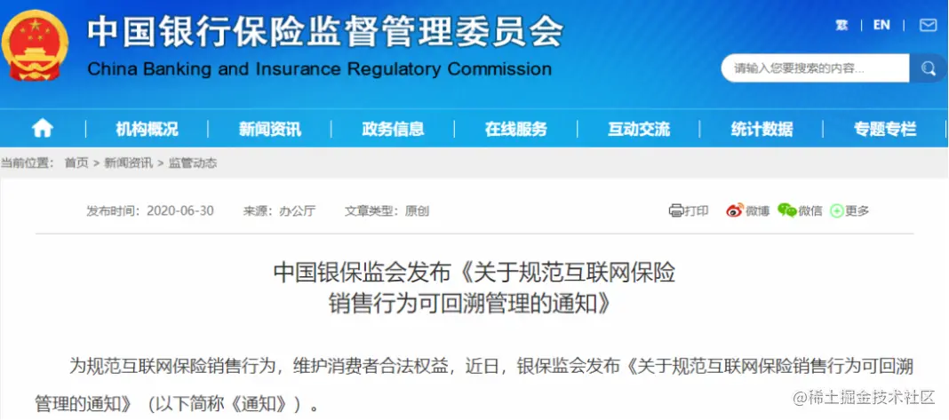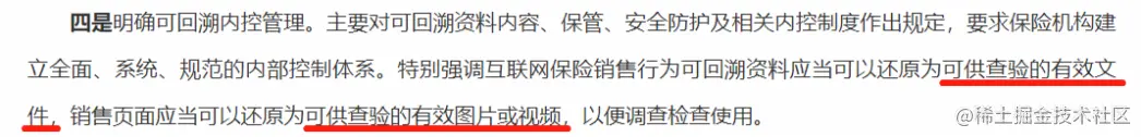 另银保监会发布《关于规范互联网保险销售行为可回溯管理的通知》对“全流程可回溯”进行了细化,并于2020年10月1日起正式实施。