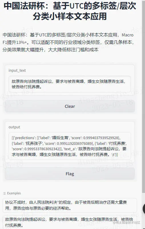 该案件中涉及婚后有子女、限制行为能力子女抚养两项要素。接下来我们将讲解在小样本场景下如何利用多标签模型,对输入文本中进行案情重要要素抽取。