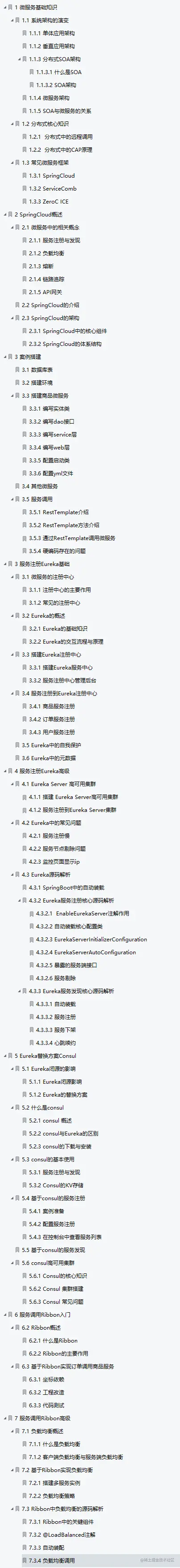 第一天主要是了解springcloud微服务架构的基础知识,打好基础(如果大家这方面的基础比较好的话可以直接跳过),然后我们就会去学习服务注册:Eureka基础、进阶和源码以及会去学习Eureka替换方案Consul,紧接着我们会去学习服务调用:Ribbon的基础、进阶和源码。这四天所有的技术点我们都会深入到源码层面去讲解。