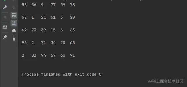 - 最后一个 for 循环用来按5行6列的格式输出二维列表中的数字。