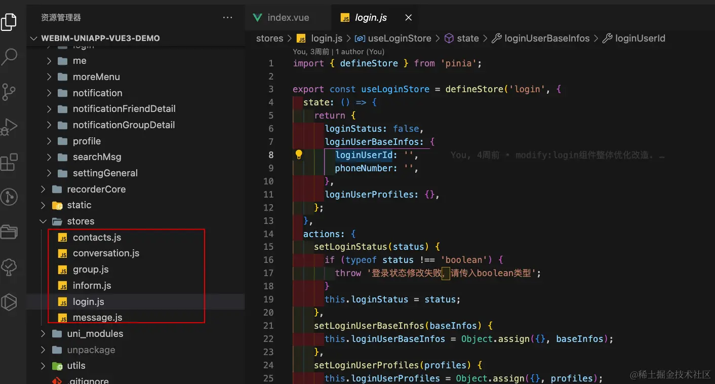 本次关于uni-app代码整体重构工作,基于上一期针对uni-app官网demo从vue2迁移vue3框架衍生而来,在迁移过程中有明显感知,目前的项目存在的问题为,项目部分代码风格较为不统一,命名不够规范,注释不够清晰、可读性差、以造成如果复用困难重重,本地重构期望能够充分展示api在实际项目中的调用方式,尽可能达到示例代码可移植,或能辅助进行即时通讯功能二次开发的能力。