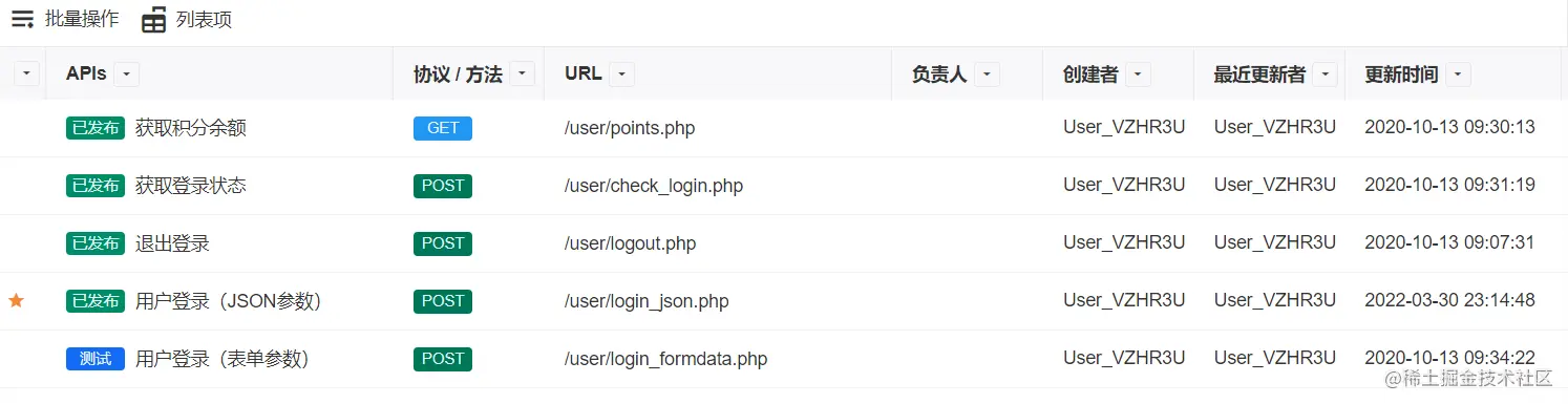 2)管理API:API信息里面会记录创建人、负责人、最后修改时间等信息,并且可以为API定义Tags,对API进行分类,可以更好地对API进行管理,如下图所示: