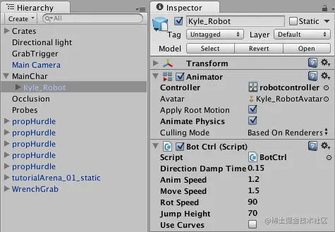 - 将模型作为游戏对象的子代与 Animator 组件放在一起