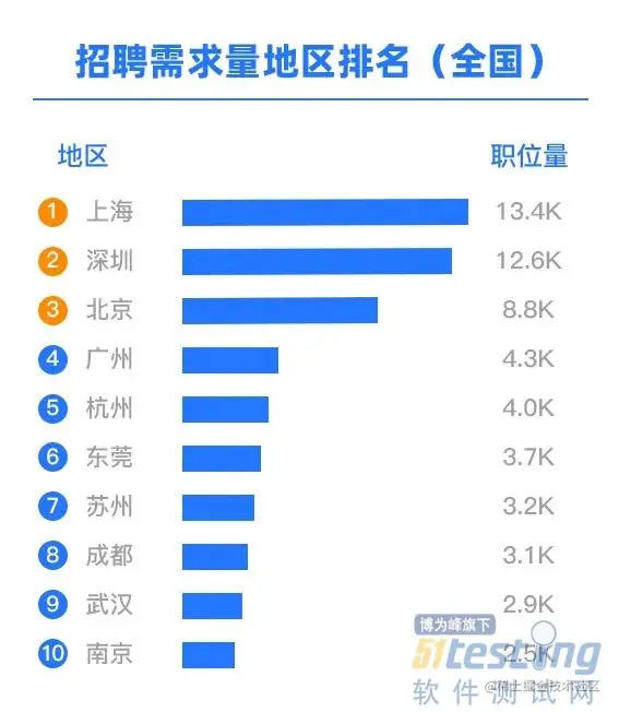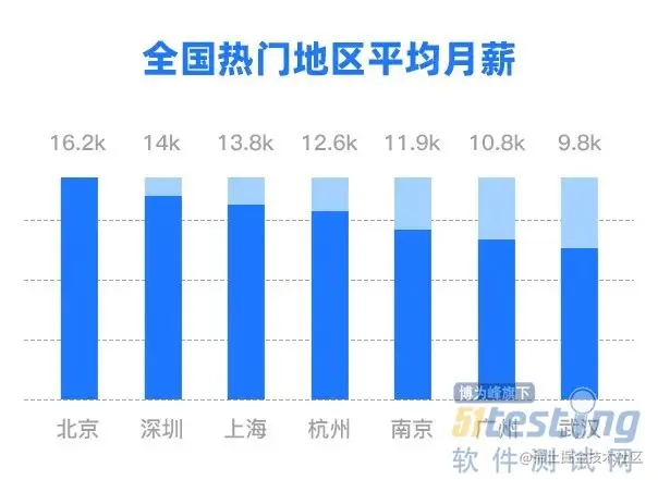 据第三方平台统计,北京软件测试工程师的平均薪资为16.2K,除了一线城市外,随着互联网行业逐渐下沉,在新一线城市、各大省会城市的就业薪资也很可观。