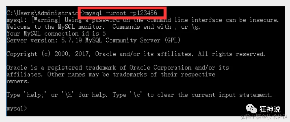注意 : -p后面不能加空格,否则会被当做密码的内容,导致登录失败 !