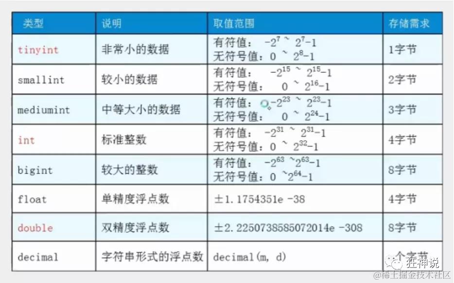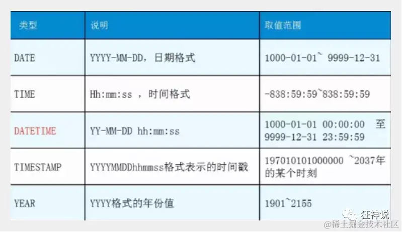 数据值和列类型