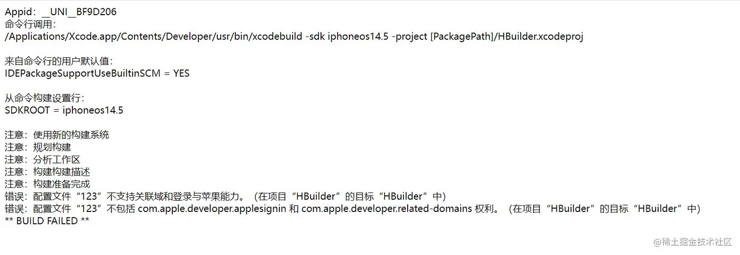 这个是因为apple id未开启apple登录授权功能,可以选择在开发工具里面关闭app的apple登录功能,或者登录apple开发者中心Sign In - Apple 然后点击对应的apple app bundle id,找到Sign In with Apple ,开启,然后重新制作描述文件,重新下载描述文件,然后重新编译app。 当然类似的还有提示没有推送权限,那就开启推送权限后重新编译app
