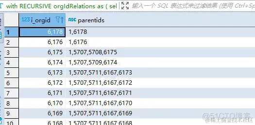 with RECURSIVE orgIdRelations as