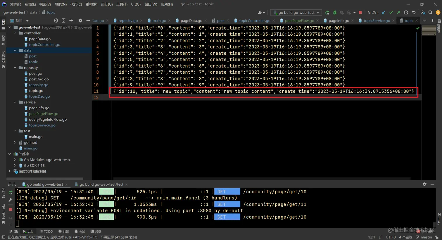 在reposity包下的reposity.go文件修改初始化数据代码,获取nextTopicId以及nextPostId: