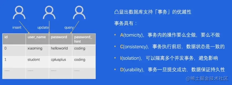 关系数据库的特点:结构化数据友好;支特事务(ACID】;支持复杂查询语言