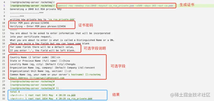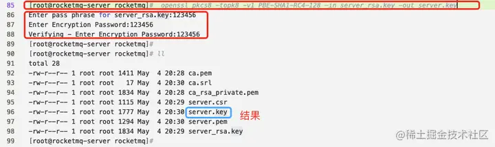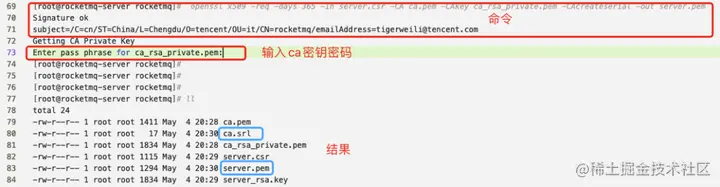 - 生成Namesrv、Broker加密密钥对,并且签发Namesrv、Broker证书