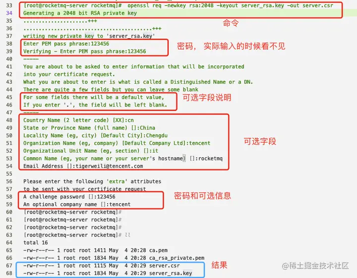 - server.csrNamesrv、Broker的加密证书的公钥和用于辨别证书迁移机构的名称信息