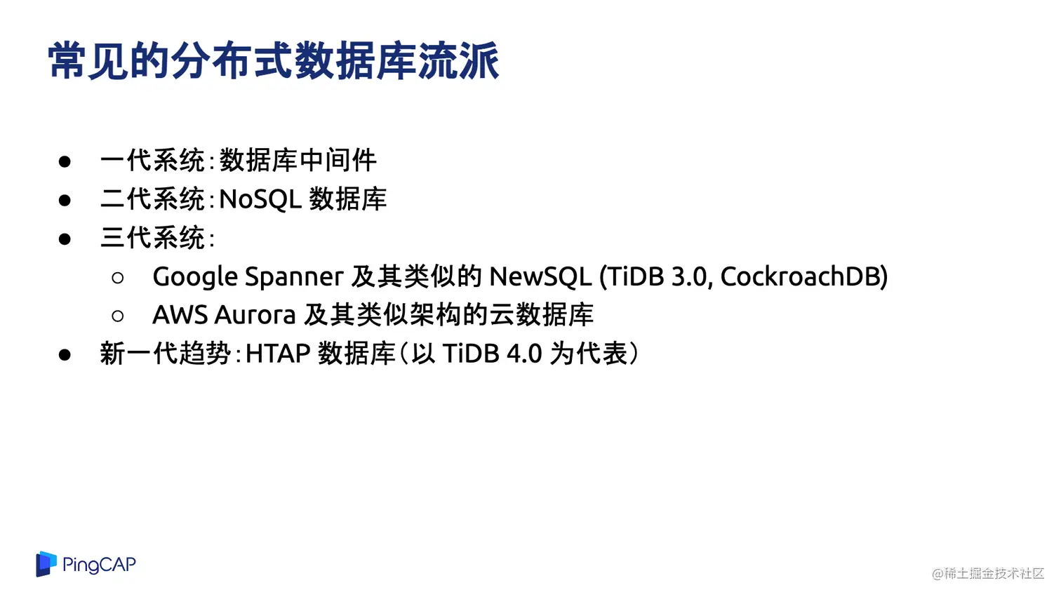 我强烈推荐您观看下 Tidb之父 黄东旭老师的演讲 : 《分布式数据库历史、发展趋势和 TiDB 架构》。