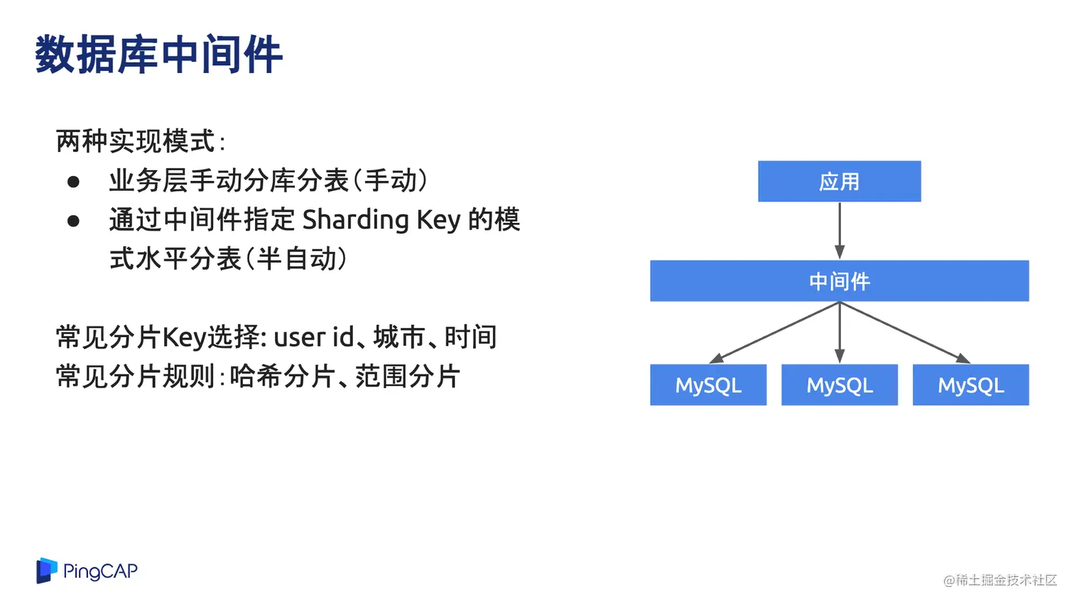 分库分表中间件 和 NoSQL 都是解决大规模数据存储和处理的方案,但分库分表中间件更侧重于对关系型数据库的扩展,而 TiDB , Oceanbase 是一个完整的分布式数据库系统,具备更强的一致性和分布式事务处理能力。