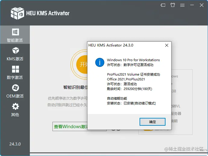 打开 HEU_KMS_Activator_v24.3.0.exe 工具,直接点击开始;
