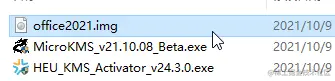 1、下载软件包,解压,office2021.img 为镜像文件,其他两个为激活工具;