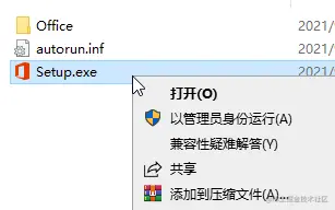 2、打开 office2021.img 文件后,以管理员身份运行里面的 setup.exe;