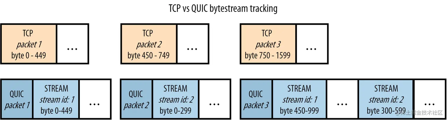 QUIC数据可能不再以与发送时完全相同的顺序交付,相当于在单个资源流中保留了顺序,但不再夸单个流(individual streams)进行排序。