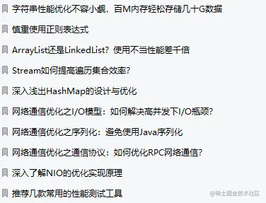 说到这,最近很多粉丝都跟我反馈说面试前都是觉得自己平时技术还行,背了八股文,完全够用了,没想到面试官不按套路出牌,直接上 Java 性能优化,并发底层相关面试题,如下所示(粉丝投稿收录总结):