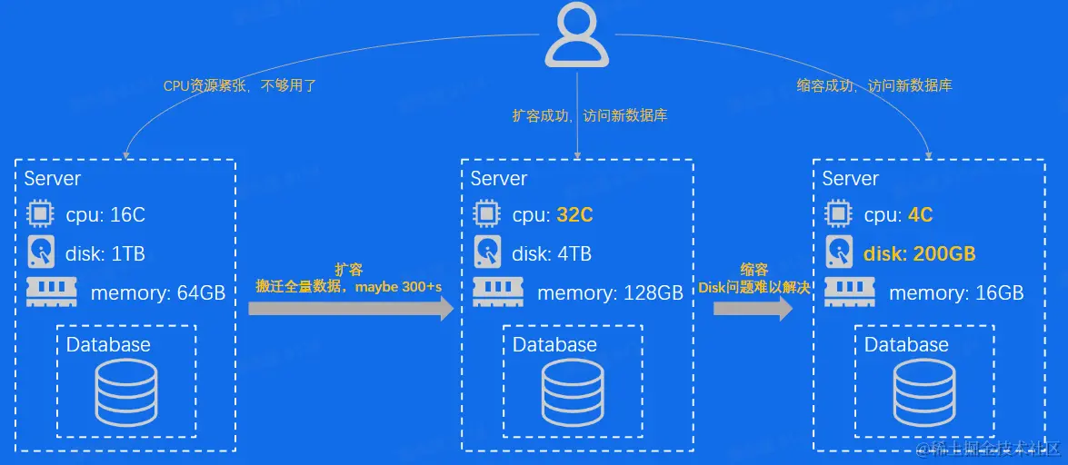 单机数据库容量有限,需要多机扩容;单机数据库不能支持弹性扩缩容;维护单机数据库性价比低。