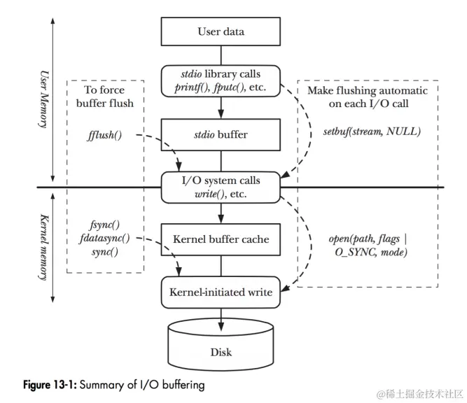 - 用户数据需要调用标准库函数,标准库函数拥有其自身的缓冲