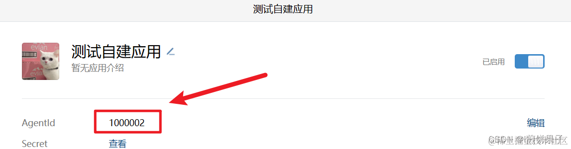 回到应用管理页面,找到我们刚刚的自建应用,点开,就能看到secret了