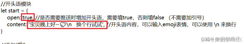 在 content 里面输入你想要的开头语(在两个单引号中间输入,引号不能删掉)