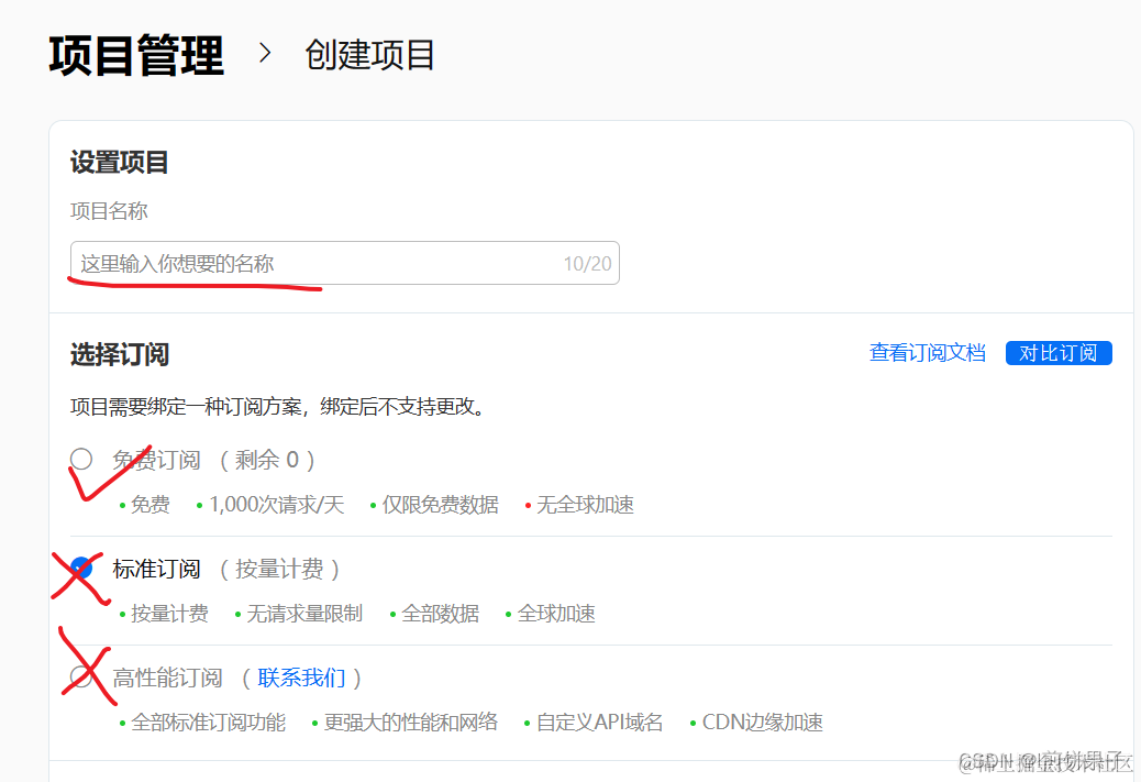 每个人都能申请一个免费项目,输入名称,选择“免费订阅” (我已经有一个免费订阅了,所以这里是灰色的无法选择,你们选择免费订阅即可)