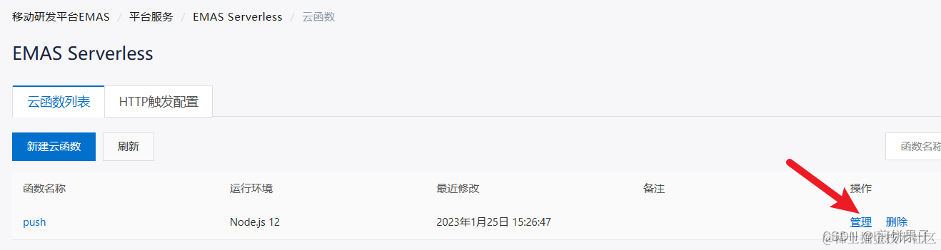 创建函数成功后,点击管理