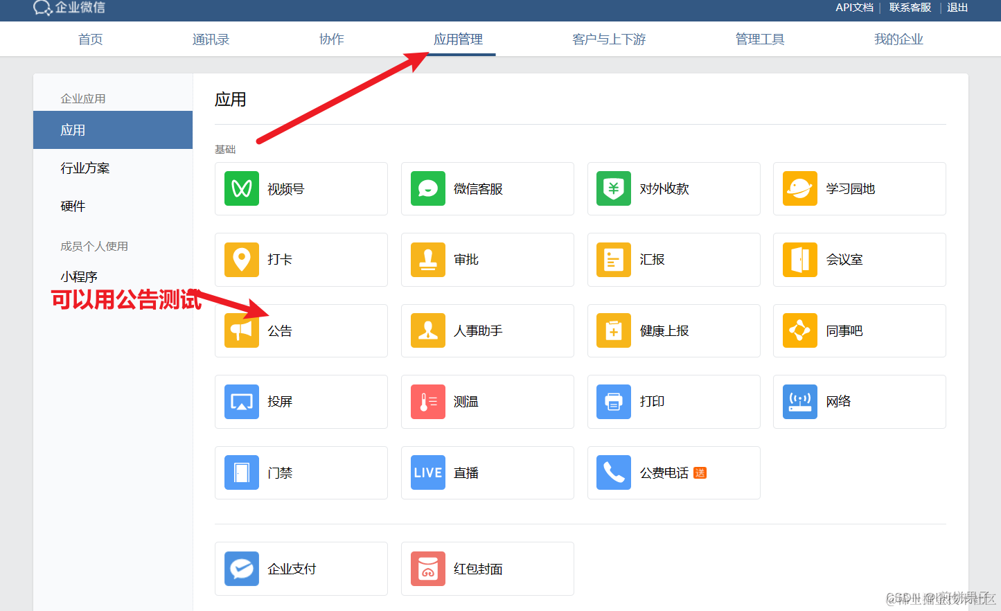 能够在 微信端和企业微信端 都收到公告就代表已经成功进入企业,且成功使用微信插件