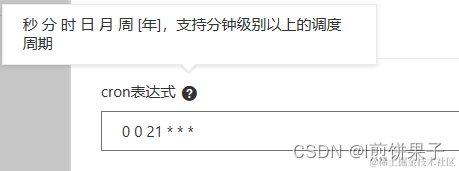 输入cron表达式,一共有6个位置,每个位置用空格隔开,可以输入数字等 * 代表任何时间都执行 (具体可以搜索cron表达式进行学习)