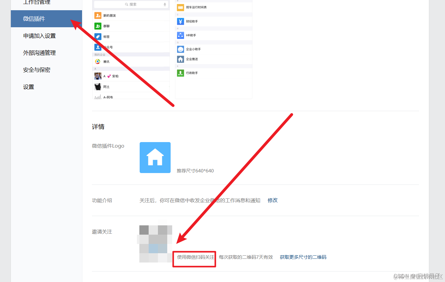 为了让我们的企业微信能直接在微信上看,需要开启微信插件