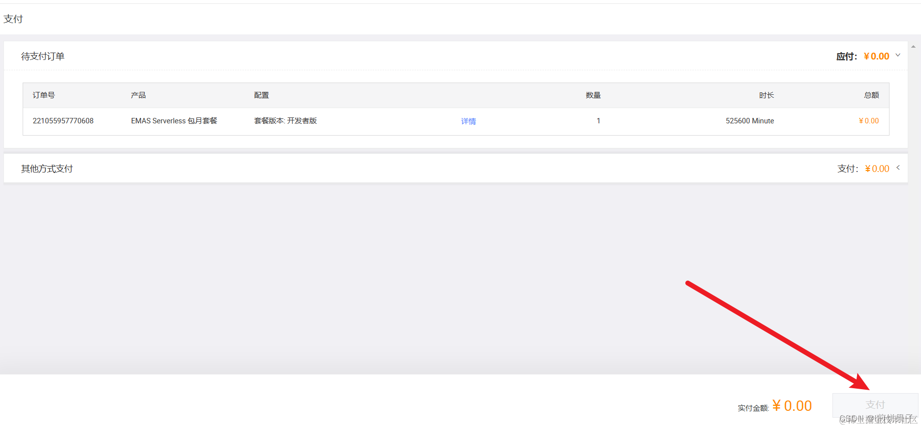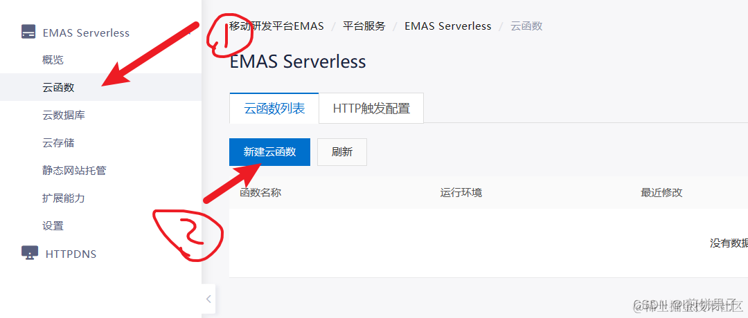 认证成功后,打开这个网址,开通云函数服务 移动研发平台EMAS按量付费 (aliyun.com)