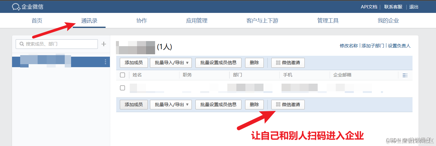 注册成功后进入管理后台。让自己和想要推送的人加入企业