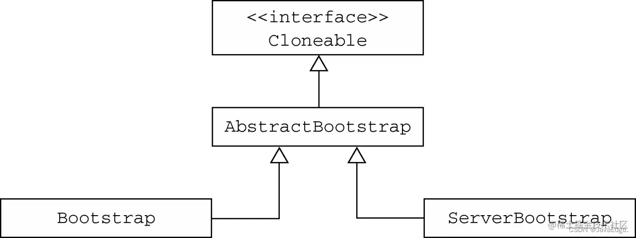 客户端和服务器两种应用程序类型之间通用的引导步骤由 AbstractBootstrap 处理,而特定于客户端或服务器的引导步骤则分别由 Bootstrap 或 ServerBootstrap 处理。