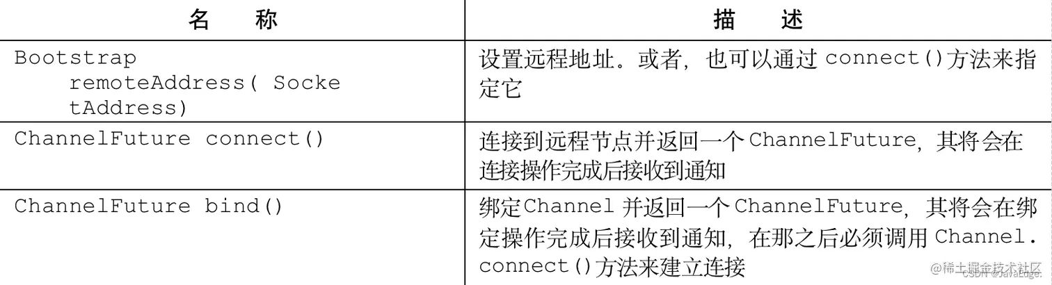 若不这样做,将导致 IllegalStateException。对 handler()方法的调用尤其重要,因为它需要配置好 ChannelPipeline。