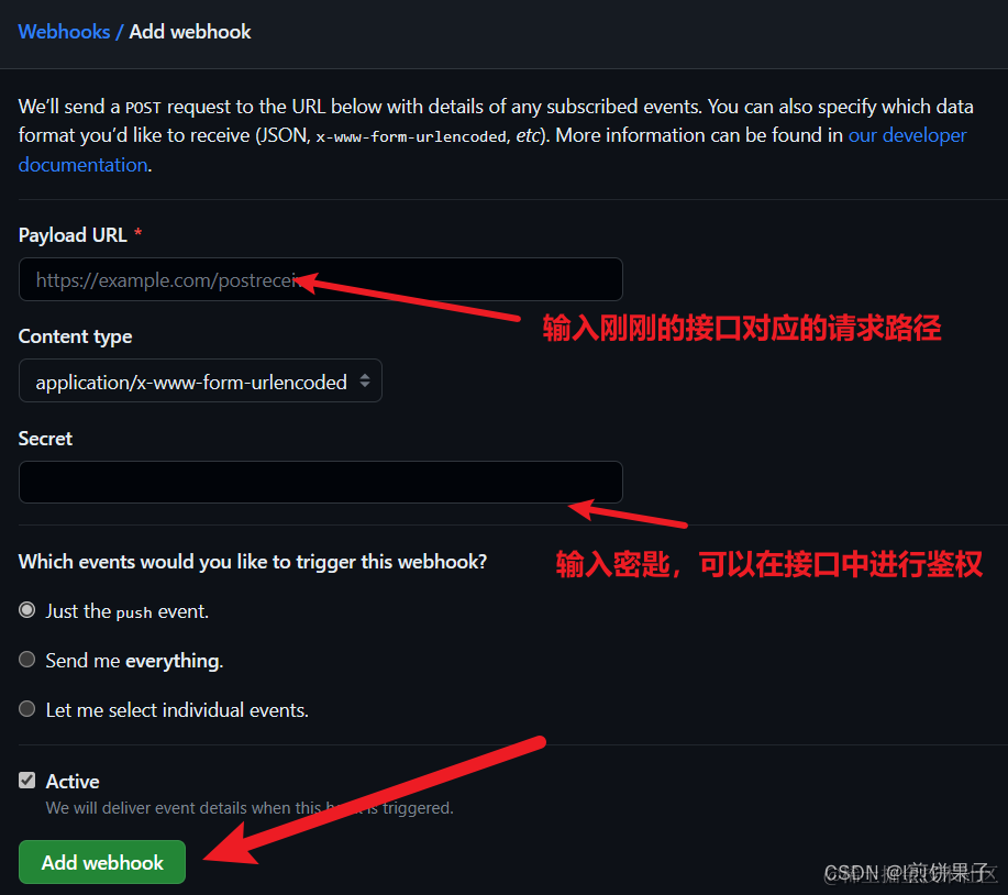 Webhooks需要向一个路径发送请求,那么我们当然得写一个接口来接收这个请求。