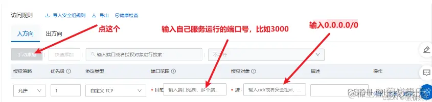 根据我们运行的服务器的端口号,需要配置安全组,才能在互联网上访问到你的服务