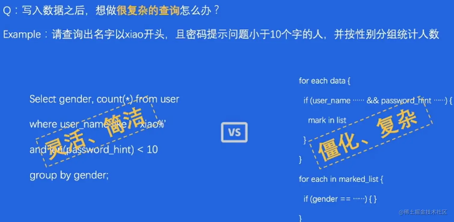 非关系型数据库也是存储系统,但一般不要求严格的结构化:半结构化数据友好,可能支持事务,可能支持复杂查询语言.